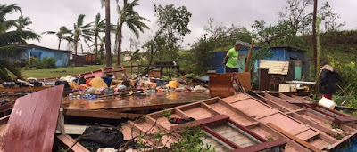 apoio ao Governo das Fiji, mostram povoações inteiras arrasadas pelo ciclone, o