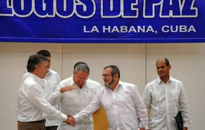 Depois de quatro anos de negociações, o governo colombiano e as Forças Armadas Revolucionárias da Colômbia (FARC) assinaram em 23 de junho um acordo de paz que põe fim a mais de 50 anos de conflito. Estavam presentes na cerimônia em Havana o Presidente colombiano Santos, o Secretário-Geral da Organização das Nações Unidas, Ban Ki-moon, os Presidentes Michelle Bachelet do Chile, Raul Castro de Cuba, Nicolas Maduro da Venezuela, e o Ministro das Relações Exteriores da Noruega, Borge Brende. Entre os pontos mais importantes desse acordo está a tabela para o definitivo cessar fogo bilateral e o abandono das armas por parte do grupo guerrilheiro, que será verificado pelas Nações Unidas (ONU) através do seu Conselho de Segurança. (CE) (Agência Fides, 24/06/2016)